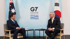 한·호주 정상회담…모리슨 총리 "文대통령 코로나·경제 성공 축하"[G7 정상회의]