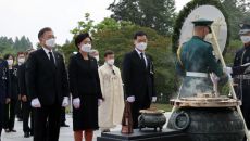 6일 현충일 추념사서 "매우 송구하다" "나라 지키는 분들 인권과 일상 지켜줘야" 추념식 후 부사관 추모소 직접 방문 유가족에- 2021.06.06 16:02