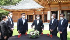 [아시아경제 류정민 기자] 문재인 대통령은 2일 청와대 상춘재에서 삼성, 현대자동차, SK, LG 등 4대 그룹 대표와 만나- 2021.06.02 13:43