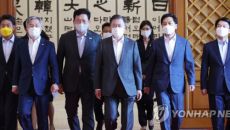 文대통령 “백신협력, 뿌듯한 성과” 野대표들은 “마스크 언제 벗나”