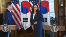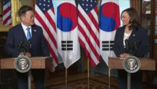 문 대통령과 악수 후 옷에 손 닦은 해리스 미 부통령, '외교 결례' 논란