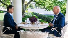 文·바이든, ‘메릴랜드 크랩’ 케이크로 오찬… 37분간 단독회담
