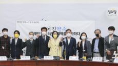 CBS노컷뉴스 윤창원 기자 여영국 정의당 대표(왼쪽 다섯번째 부터), 장혜영 정책위의장, 배진교 원내대표를 비롯한 참석자들이- 2021.05.07 15:08