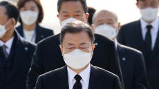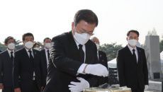 (서울=연합뉴스) 임형섭 기자 = 문재인 대통령은 4·19혁명 61주년인 19일 서울 강북구 국립 4·19 민주묘지를 참배했다- 2021.04.19 08:51