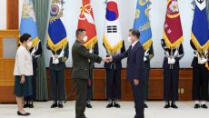 문 대통령, 해병대사령관 삼정검 수치 수여..."강한 국방 선두에 서달라"
