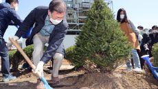 文 대통령, 식목일 맞아 당인리 발전소서 '회양목' 식수