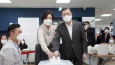 文대통령 내외, 사전투표 첫날 '서울시장 보궐선거' 투표