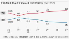 文지지율 34.7% 역대 최저… 부정 평가는 60.5% 최고