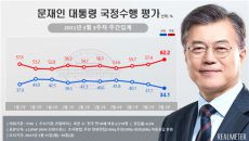 文 지지율 34.1% 최저치… 부정평가는 62.2%로 최고