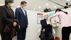 26일 코로나 백신 접종 현장 직접 방문 현장 점검 및 1, 2호 접종 모습 참관 文, SNS에 "일상 회복 멀지 않았다" 靑- 2021.02.26 15:43