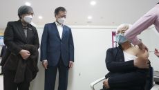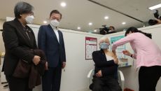 文대통령 "역사적인 1호 접종"...백신 접종 참관