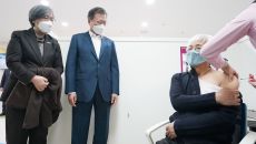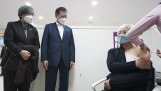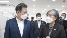 문 대통령, 코로나 백신접종 참관…“대통령한테는 언제 기회 줍니까”