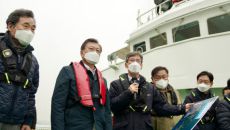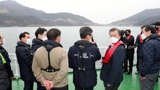 문재인 대통령은 25일 배를 타고 부산 가덕도 인근 해상을 찾아 신공항 필요성을 역설했다. 가덕도 신공항 건설에 안전성·경제성- 2021.02.25 22:15
