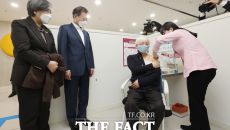 문대통령, 백신 접종 현장 방문…'1호 접종' 지켜봐