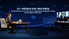 (서울=연합뉴스) 박경준 기자 = 문재인 대통령이 지난달 27일 화상으로 개최된 '2021 다보스 어젠다 한국 정상 특별연설'- 2021.02.18 15:22