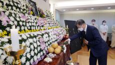 [이데일리 김영환 기자] 문재인 대통령은 17일 오전 서울 종로구 서울대병원 장례식장에 마련된 고(故) 백기완 통일문제연구소장- 2021.02.17 17:31