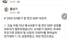 문 대통령이 공유한 홍 부총리의 글은 한국은행이 이날 발표한 2020년 4/4분기 GDP성장률 속보치(+1.1%)와 지난해 연- 2021.01.26 14:18