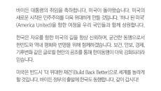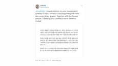 文 "바이든 취임 축하…미국의 새로운 시작에 한국도 같이 가자"