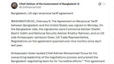 [워싱턴=뉴스핌] 박정우 특파원 = 방글라데시가 미국과 상호무역협정을 맺고 대미 상호 관세를 19% 수준으로 낮추는 동시에,- 2026.02.10 05:28