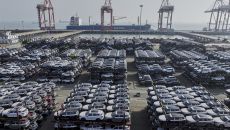 ▲ 지난 7일 중국 동부 장쑤성 타이창의 한 항구에서 해외 시장으로 배송을 기다리는 신차 트럼프 미국 행정부의 대(對)중국 '- 2025.04.11 15:49