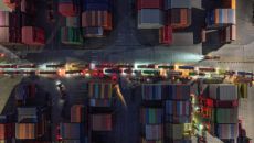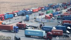 [인천=뉴스핌] 김학선 기자 = 미국의 상호관세가 발효된 9일 인천 연수구 인천신항에서 컨테이너를 실은 트럭들이 컨테이너터미널- 2025.04.09 14:31
