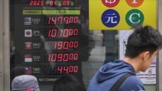 미국발 관세전쟁 우려가 고조되며 원/달러 환율이 1500원선에 바짝 다가선 9일 서울 명동 외화 환전소 화면에 원/달러, 원/- 2025.04.09 15:44