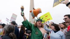 예상치 5배 10만 명 둘러싼 워싱턴기념탑 관세발 인플레·경기침체 공포에 집회 운집 5년 만에 최악 증시에도 ‘요지부동’ 트럼- 2025.04.06 19:00