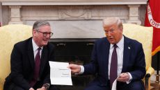 스타머, 트럼프 만나 英국왕 초청장 전달 도널드 트럼프 미국 대통령(오른쪽)이 27일 백악관에서 키어 스타머 영국 총리로부터- 2025.02.28 18:04