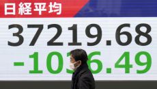 ▲ 28일 도쿄의 한 증권사에서 한 사람이 일본 닛케이 지수가 표시된 전자 주식판 앞을 걷고 있다. 일본 증시 대표 주가지수인- 2025.02.28 17:35