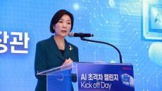 ▲ 오영주 중소벤처기업부 장관이 26일 서울 종로구 포시즌스 호텔에서 열린 'AI 초격차 챌린지 킥오프 데이' 행사에서 인사말- 2025.02.26 17:51