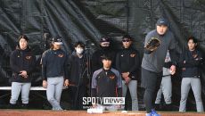 류현진의 불펜피칭, '한화 투수들 총 집합, 캠프의 관심이 여기로' [김한준의 현장 포착]