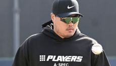 (엑스포츠뉴스 거제, 김한준 기자) 역시 메이저리거는 달랐다. 14일 오후 경남 거제시 하청스포츠타운에서 진행된 한화 스프링캠- 2022.02.16 07:23