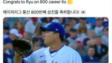 토론토 구단, '한글과 태극기'로 류현진 통산 800K 축하