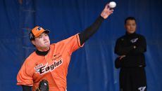한화 류현진, 두 번째 불펜투구…친구 이재원과 60구 점검