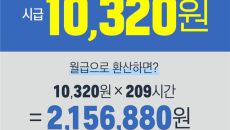 고용부, 내년 최저임금 1만320원 고시…“월급으론 215만원”