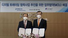 포스코인터내셔널-KTNET 업무협약식. 주시보 포스코인터내셔널 사장(왼쪽)과 차영환 KTNET 사장. 사진제공=포스코인터내셔널- 2022.03.28 13:35
