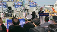HJ중공업, 부산 영도조선소서 해군 신형고속정 4척 통합진수식 진행