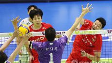 신들린 듯한 블로킹…남자배구 KB, 우리카드 잡고 2위 맹추격