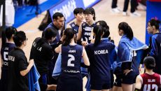 ▲ 모랄레스 전 감독(중앙)의 작전 지시를 듣는 여자배구 대표팀 선수들 올해 국제배구연맹(FIVB) 발리볼네이션스리그(VNL)- 2025.11.19 11:32
