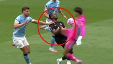 "이게 어떻게 레드카드가 아니야?" 맨시티 GK, 상대 공격수 막다가 '니킥+핸드볼'…그런데 결과는 'NO 카드'