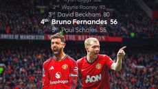 '3선에 내려도 미친 영향력' 브루노 페르난데스 PL 도움 1위 등극...맨유 역대 AS 4위 올랐다