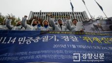 11월18일 기자들도 경찰 물대포 항의[경향이 찍은 오늘]