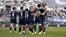 ▲ 김오규가 팀의 두 번째 골 넣자 기뻐하는 서울 이랜드 선수들 서울 이랜드와 성남FC가 프로축구 K리그2 정규리그 최종전 승- 2025.11.23 19:12