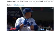 다저스 구단 SNS "류현진 첫 홈런, 우리의 '이 주의 플레이'"