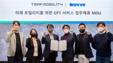 티맵모빌리티는 28일 온라인 동영상 서비스(OTT) 플랫폼 웨이브와 ‘미래 모빌리티를 위한 OTT 적용 업무 제휴’를 체결했다- 2022.11.28 10:15