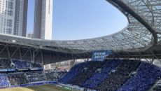 [인터풋볼=신동훈 기자(울산)] 푸른 파도 위에 빨강이 더해졌다. 울산 HD 팬들은 이질적인 느낌 속 씁쓸한 감정까지 느낄 것- 2025.02.16 12:19
