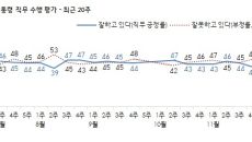 갤럽이 지난 24~26일 전국 만 18세 이상 1005명을 대상으로 조사한 결과, '잘하고 있다'는 긍정 평가는 40%로 지난- 2020.11.27 10:42