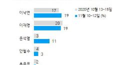윤석열, 잠룡 선호도 11%로 급등..이낙연·이재명 19% 공동 1위