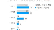 한국갤럽 차기 대권주자 선호도 국민의힘 지지층 34%가 尹 선호 이낙연, 이재명 각각 19%로 공동 1위 [파이낸셜뉴스] 윤석- 2020.11.13 10:55