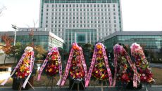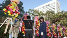 "윤석열이 살아야 나라가 산다" 대검 앞에 늘어선 '응원 화환' 350개 자진 철거